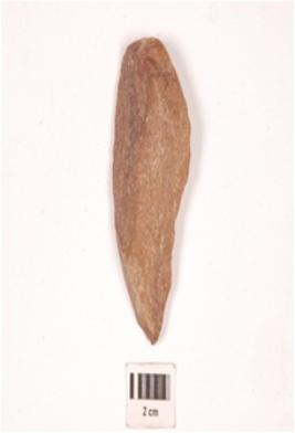 | Description / विवरण | A side scraper on end struck flake with prepared platform, prominent bulb on ventral surface, pointed towards distal end and applied soft hammer technique. |