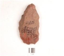| Description / विवरण | Scraper made on chert end struck flake flake scars on one side, irregular retouched on edge and triangular cross section. |