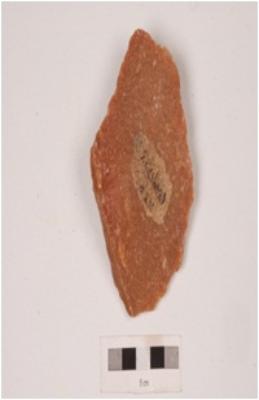 | Description / विवरण | A side scraper made on end struck, prepared platform, prominent bulb on ventral surface and irregular retouch at cutting edge. |