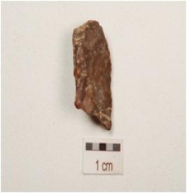 | Description / विवरण | Chert parallel sided blade with a midridge and flake scars on dorsal side, striking platform, use wear marks along cutting edges and triangular in section. |