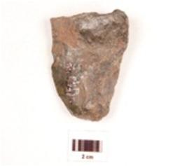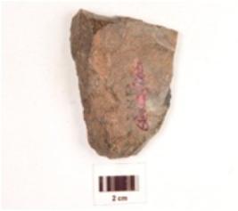 | Description / विवरण | Scraper made on chert end struck flake, flake scars on one side, prepared platfrom, prominent bulb, regular working edge, and partly broken from side. |