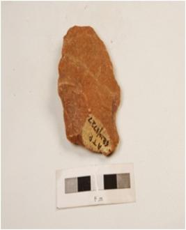 | Description / विवरण | Scraper, made on quartzite stone, retouching marks on edges and flake scars on surface. |