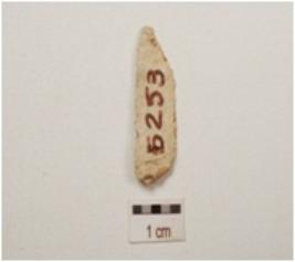 | Description / विवरण | Chert blade with a prominent ridge on dorsal side chipped off bulb on ventral side, pointed along at distal end, use wear marks on cutting edgs and triangular in section. |