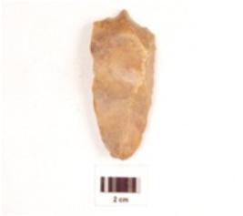 | Description / विवरण | Scraper made on chert end struck flake, flake scars on both sides and partly broken. |