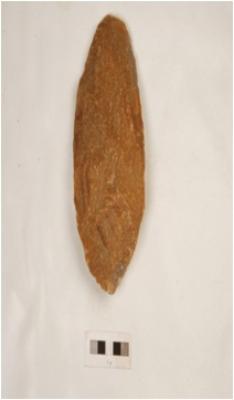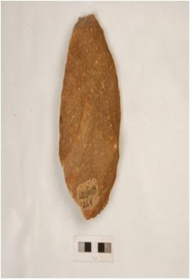 | Description / विवरण | Side scraper with one working edge, retouches along the working edges visible, side struck, some recent visible soft hammer technique used. |