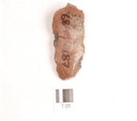 | Description / विवरण | Blade made on chert prepared platform, prominent bulb irregular retouched edge, flake scars on one side and trapezoidal cross section. |