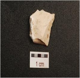 | Description / विवरण | Chert utilized flake with two ridges on dorsal side, partly cortex visible, use wear marks on working edge and trapezoidal in section. |