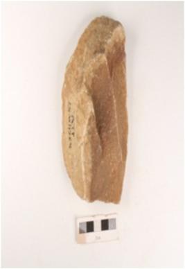 | Description / विवरण | A unifacial chopping tool made on quartzite with flake scars and cortex on dorsal and bulb on ventral. |