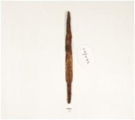 | Description / विवरण | An iron elongaled spear head long in size, one end pointed, triangular cross section and rough surface and tanged. |