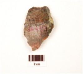 | Description / विवरण | A scraper made on chert ridge on dorsal surface, irregular cutting edges, prominent bulb on ventral surface. |