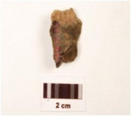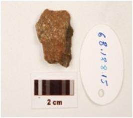 | Description / विवरण | A scraper made on chert, ridge on surface, prominent bulb on ventral side, irregular cutting edges. |