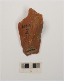 | Description / विवरण | A side-scraper on flake, diffused bulb on ventral surface, single flake on dorsal side and cortex on dorsal side. |