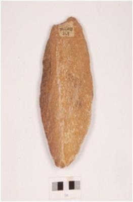 | Description / विवरण | Bifacial scraper on quartzite core with flake scars on both sides and irregular retouches on working edge. |