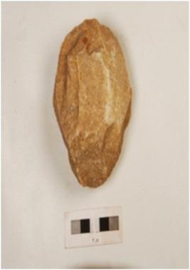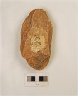 | Description / विवरण | A scraper, round in shape flake scars on ventral and dorsal side and irregular edges. |