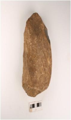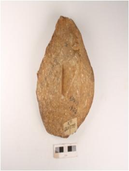| Description / विवरण | A stone chopper, made with end struck flake, prominent bulb on vemtral and prepared platform and its bi-facial. |