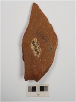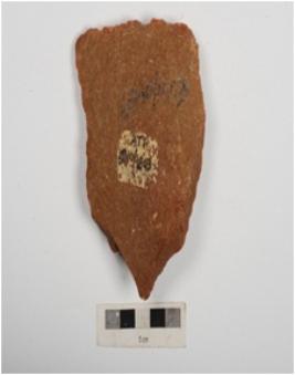 | Description / विवरण | A side scraper made on quartzite end struck flake, flake scars on dorsal side, prominent bulb on ventral side, retouched mark on both side edges and pointed along distal end. |