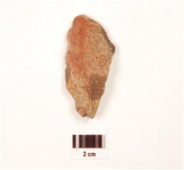 | Description / विवरण | A scraper made on chert, ridge on dorsal surface, difused bulb on ventral, irregular cutting edges. |