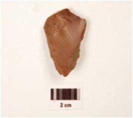 | Description / विवरण | A flake made on chert, flake scars on surface, irregular cutting edges, difused bulb on ventral. |