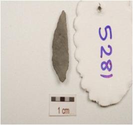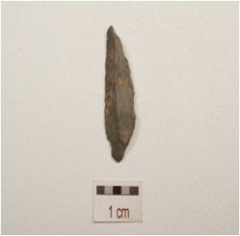 | Description / विवरण | Backed blade made on chert, end struck flake, bulb absent pointed both ends, blunted one side, used ware marks on cutting edge, blade scars on dorsal surface, triangular in section. |