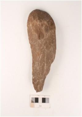 | Description / विवरण | A quartzite miniature handaxe, flake scars on both sides, edges sharpened by soft hammer techinque and cortex on one side. |