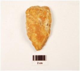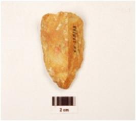 | Description / विवरण | A scraper made on chert, ridge on dorsal surface, irregular cutting edges, difused bulb on ventral surface. |