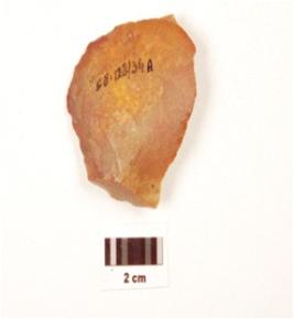 | Description / विवरण | A scraper made on chert, ridge on dorsal surface, prepared platform on proximal end, use wear cutting edges. |
