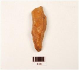 | Description / विवरण | A flake made on chert, flake marks on dorsal surface, irregular cutting edges. |