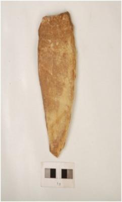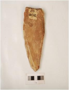 | Description / विवरण | A flake detached from a quartzite core, diffused bulb on ventral side and partly intact cortex on the prepared platform. |