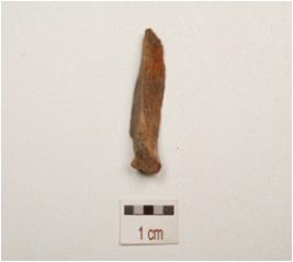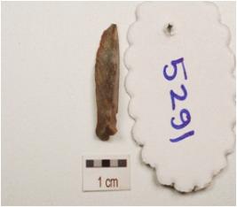 | Description / विवरण | Flake made on chert, end struck flake, bulb absent, broad one end, pointed other end, used ware marks along the cutting edge triangular in section, flake scars on surface. |