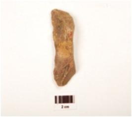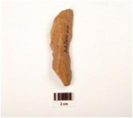 | Description / विवरण | A flake made on chert, ridge on dorsal surface, prepared platform, cutting edges. |