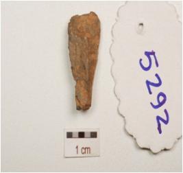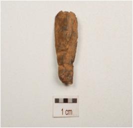 | Description / विवरण | Flake made on chert, end struck flake, bulb absent, used wear marks along the cutting edge, flake scars on both surfaces, diamond shape in section. |