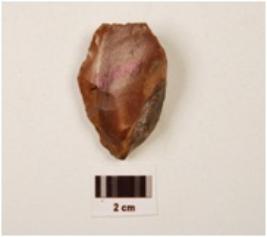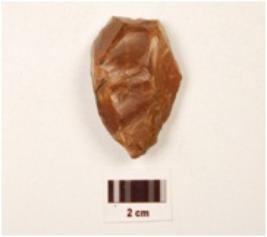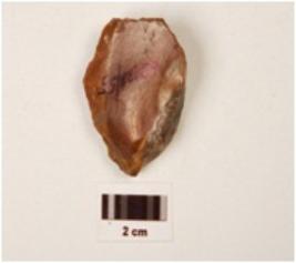 | Description / विवरण | A scraper made on chert, flake scars on dorsal surface, irregular cutting edges, difused bulb on ventral surface. |