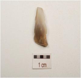 | Description / विवरण | Flake made on chalcedony end struck flake, bulb absent used ware marks along the cutting edge, flake scars on one surface, triangular in section. |