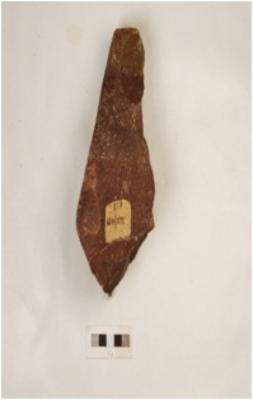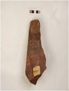 | Description / विवरण | Chopper with unifaical flaking on working edge cortex visible on one end and block on block technique used. |