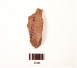 | Description / विवरण | A flake made on chert, ridge on dorsal surface, cutting edges. |