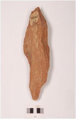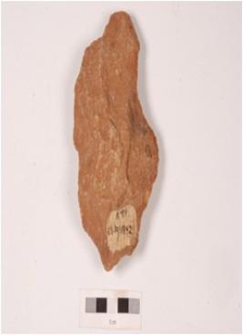 | Description / विवरण | A scraper made on quartzite pebble, alternative flake scars on both surfaces, applied block on block technique and irregular retocuhes. |