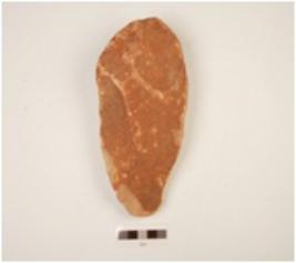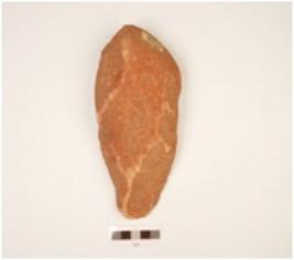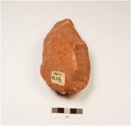 | Description / विवरण | A handaxe made on quartzite end struck flake, bulb absent, cortex partly intact on one side, plano-convex in cross section and wavy working edge. |