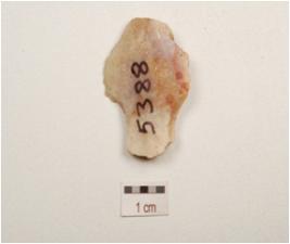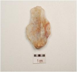 | Description / विवरण | Scraper made on end struck chert flake, prepared platform on proximal end, bulb on ventral side, blade scars on one side, plano convex in section. |