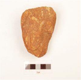 | Description / विवरण | A fragment of handaxe made on sandstone with flake scars on both sides, rectangular in cross section and weathered surface. |