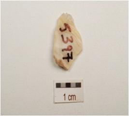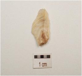 | Description / विवरण | Flake made on end struck chert flake prepared platform on proximal end, use wear marks on cutting edges, triangular in section. |