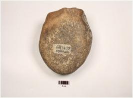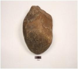 | Description / विवरण | Chopper made on quartzite pebble, broad cutting edge, u-shaped butt-end, flake scars on dorsal and ventral sides. |