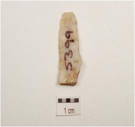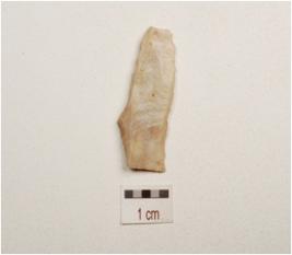 | Description / विवरण | Blade made on chert double ridge on dorsal side, defused bulb on ventral side, use wear marks no cutting edges, trapezoidal in section. |