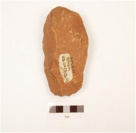 | Description / विवरण | A scraper made on quartzite end struck flake, flake scars on both sides, prepared platform, prominent bulb on ventral side, bi-convex in cross section and wavy cutting edge. |