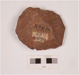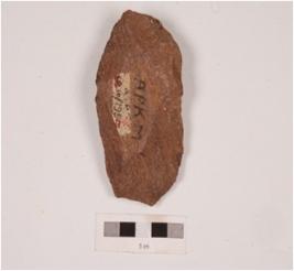 | Description / विवरण | A quartzite stone side scraper, made on end struck flake, prepared platform, diffused bulb on ventral surface and irregular retouch at cutting edge. |
