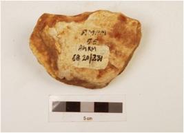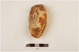 | Description / विवरण | A scraper made on quartzite end struck flake, bulb absent, plano-convex in cross section and wavy cutting edge. |