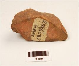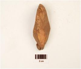 | Description / विवरण | A fragment of handaxe made on quartzite end struck flake, lenticular in cross section and flake scars on both sides. |
