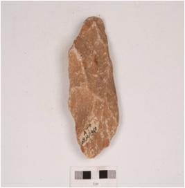 | Description / विवरण | A bifacial hand axe made on quartzite with sharp cutting edges and flake scars on both the surface. |
