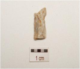 | Description / विवरण | Fragment of a blade made on end struck flake, prepared platform on porximal end, single ridge on dorsal side and diffused bulb on ventral side triangular in section. |