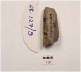 | Description / विवरण | Chert core with four blade scars on surface. |
