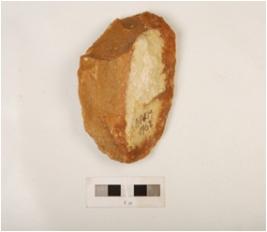 | Description / विवरण | A side scraper on end struck flake, irregular flaking alternate flakes on dorsal end and irregular retouch along the edges. |